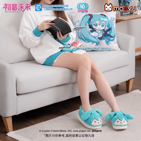 Moeyu Hatsune Miku “Happy Home” Series Plush Slippers | Cute Winter Warm Indoor Shoes | Anti-Slip Anime Miku Homewear