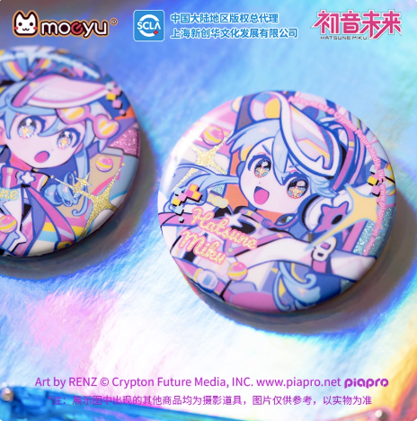 Celebrate the timeless charm of Hatsune Miku with the Moeyu “Retro & Future Reflection” Series Badge 💿✨