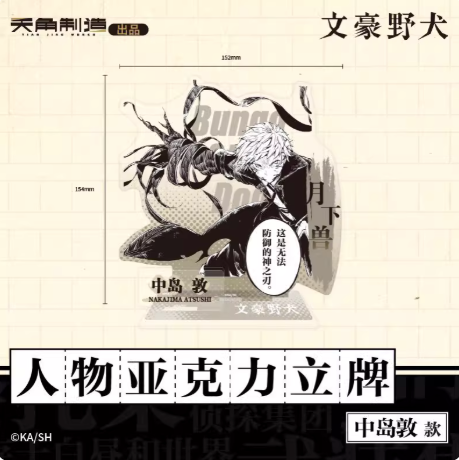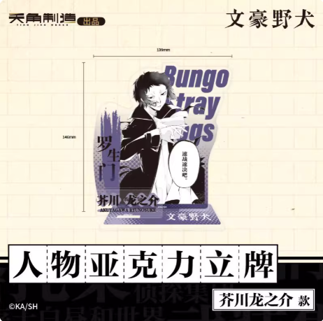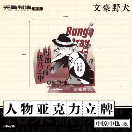 Bring your favorite Bungo Stray Dogs characters to life with this Official Kadokawa Acrylic Stand Series! Featuring Dazai Osamu, Chuuya Nakahara, and other beloved characters, each stand showcases detailed, high-quality printing and a clear base—perfect for display on your desk or collection shelf.